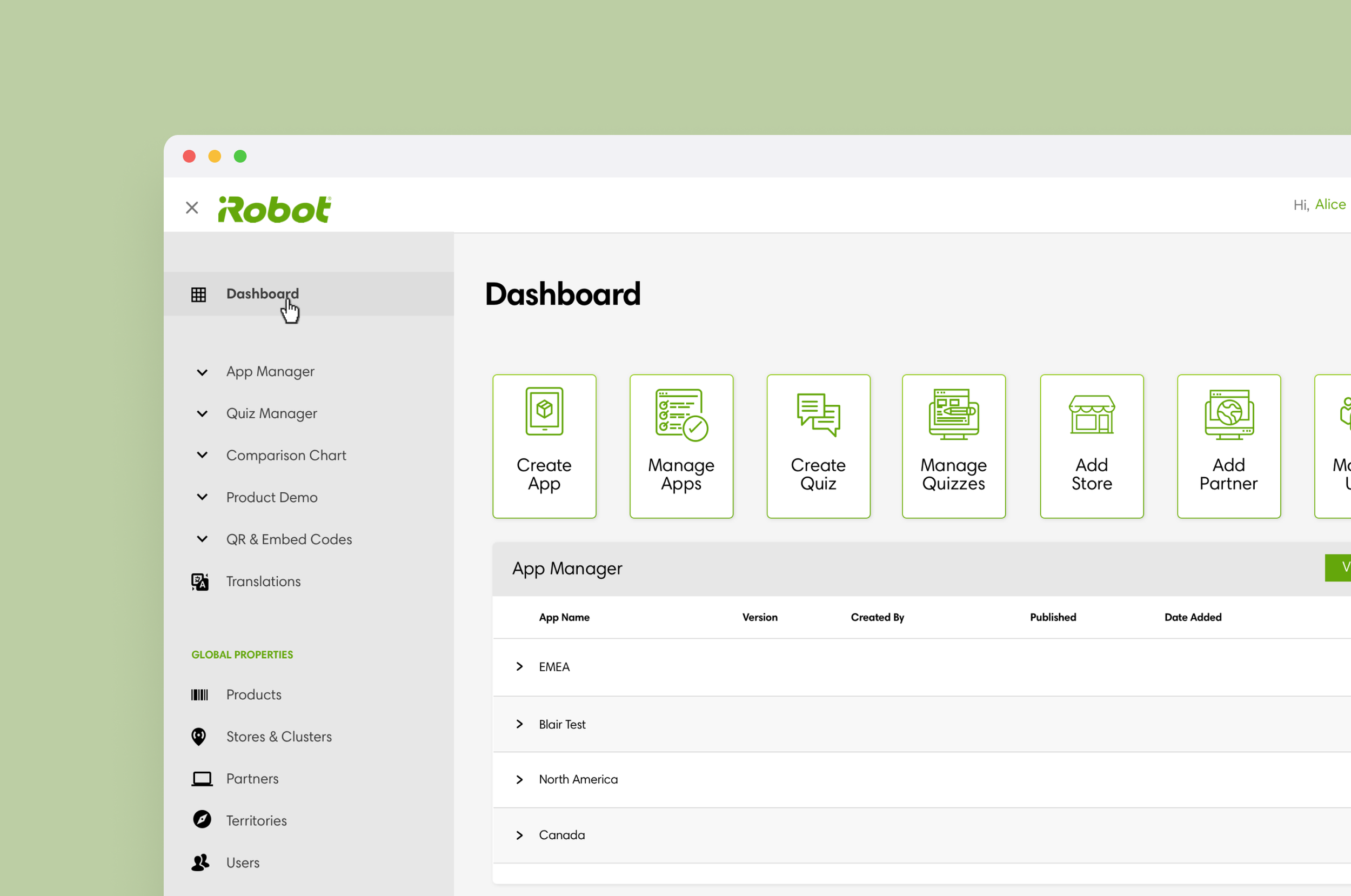A custom platform that empowers iRobot partners to create, manage, and publish consumer experiences on the web.
