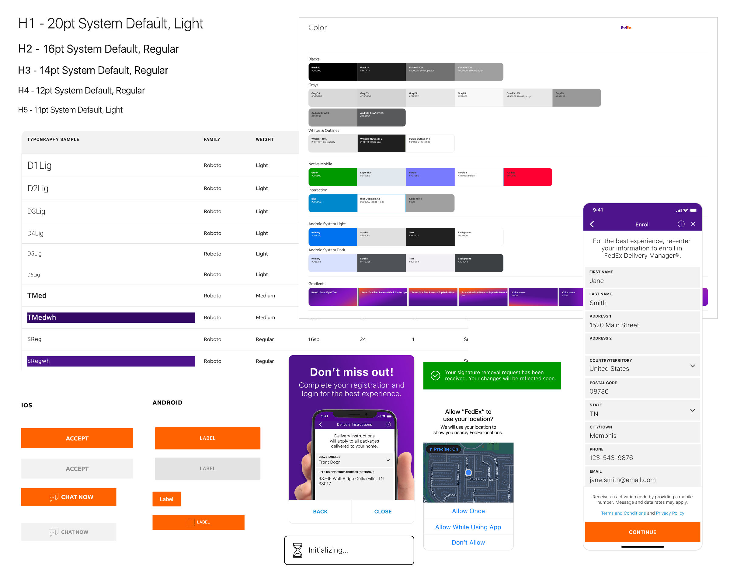 Bringing FedEx Mobile closer to the enterprise’s global design system by conducting an audit and providing components and documentation for native capabilities.