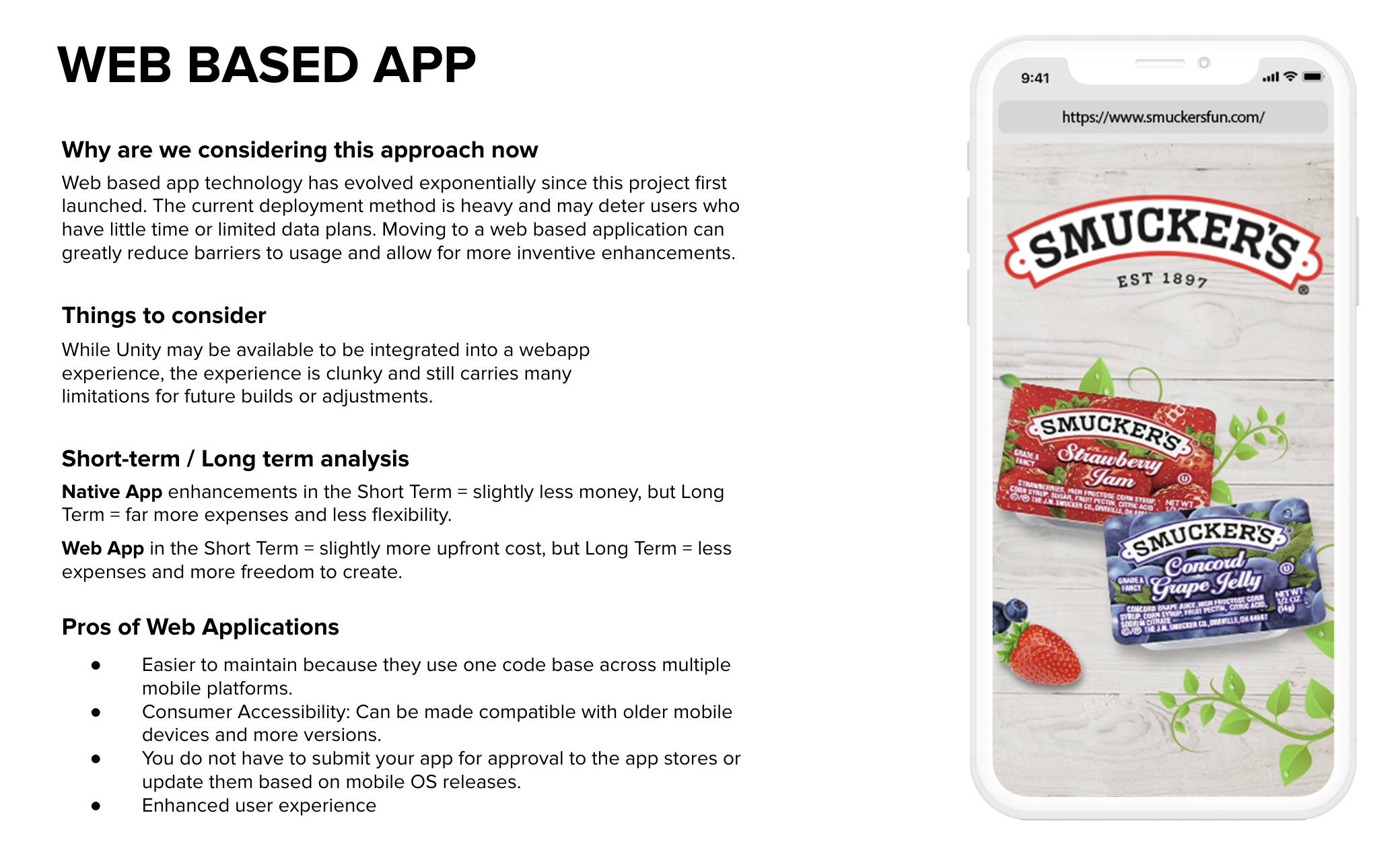Now, with the new technical update for this project, the only way users could get into the experience is through a QR code or link. We had to highly consider their physical location, QR code placement, and Smucker’s packaging to avoid any blockers during game play.